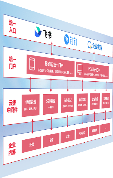 对协作平台提供支持服务,,,支持企业应用与协作平台对接,,,,包含组织同步、、、、消息集成、、待办集成等。。。支持目前主流的协作平台:钉钉、、企微和飞书。。。
